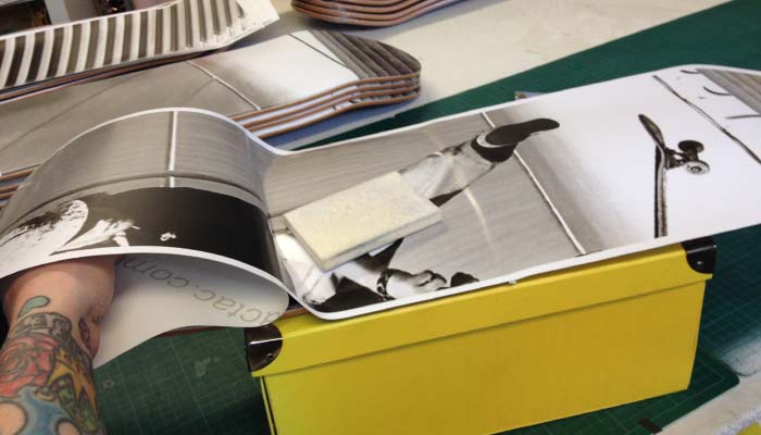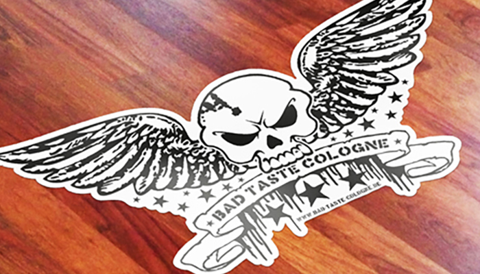 Klebefolie gibt es in unterschiedlichen Qualitäten für diverse Einsätze. Gedruckt wird auf weiße oder transparente Folie. Die Folie kann wie hier auch konturgeschnitten werden. Ein zusätzliches Laminat schützt vor Abrieb und Wettereinflüssen.
