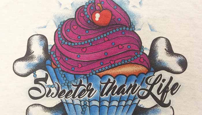 Bei Motiven mit kräftigen Farben sind sogar freigestellte Motive auf dunklen Textilien möglich - ohne weiße Vollfläche im Hintergrund.